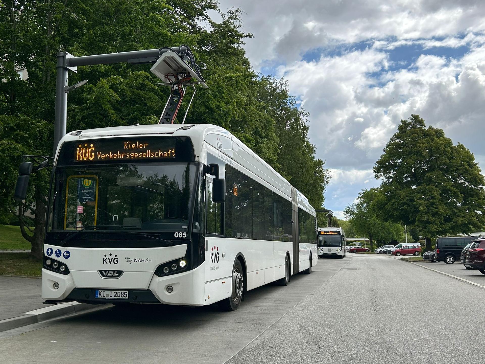 Bis zur Auslieferung der neuen Elektrobusse ab Sommer 2025 werden dort nun vereinzelt Busse geladen. Mit den neuen Fahrzeugen werden zukünftig auch die Linien 14 und 15 nach Heikendorf bzw. Laboe elektrisch bedient.